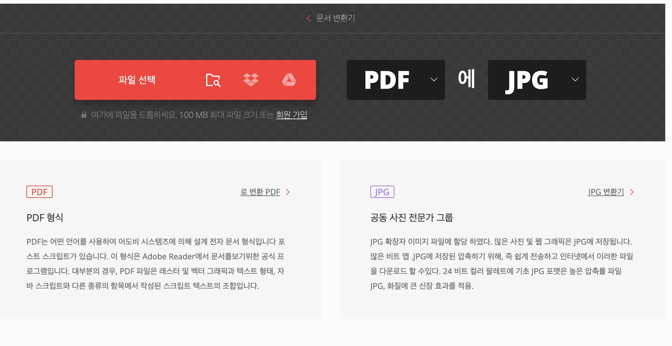 - PDF 파일을 먼저 선택하시거나 페이지에 파일을 드래그 해서 옮기면 바로 업로드 되고, pdf 에서 jpg로 설정을 맞춰준 다음, "변환" 버튼을 눌러주면 바로 실행되는데요.